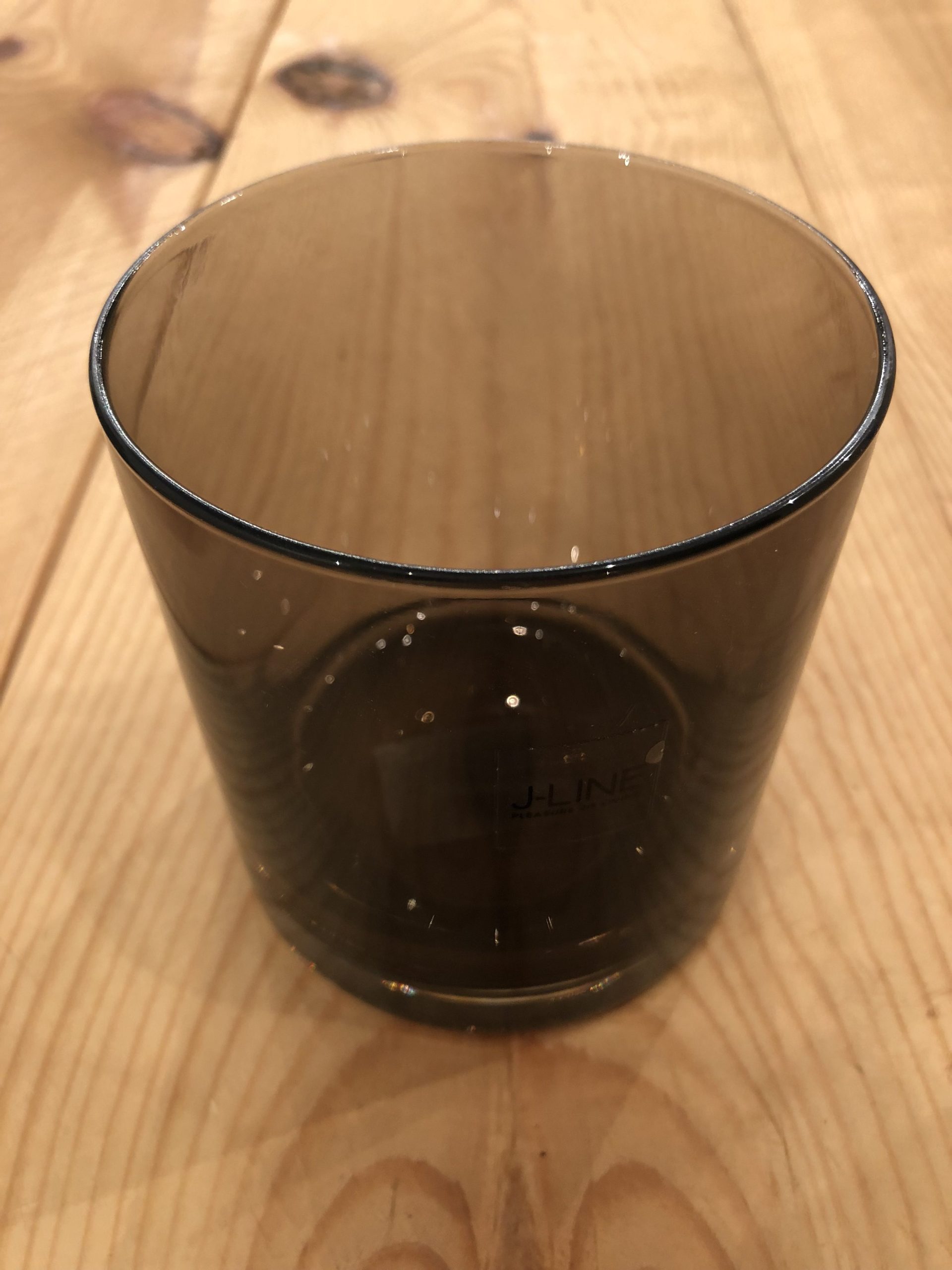 Portavelas de cristal gris, elegante y perfecto para cualquier rincón.